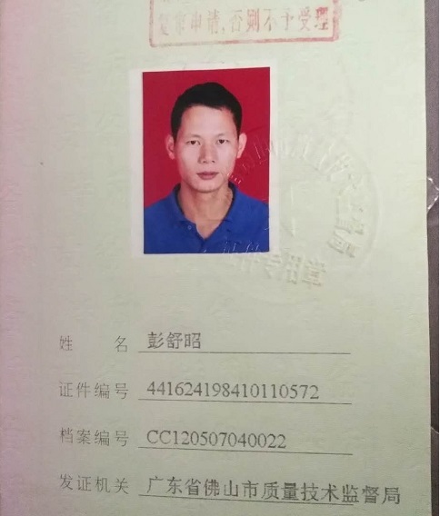 施工作業(yè)人員操作證--彭舒昭